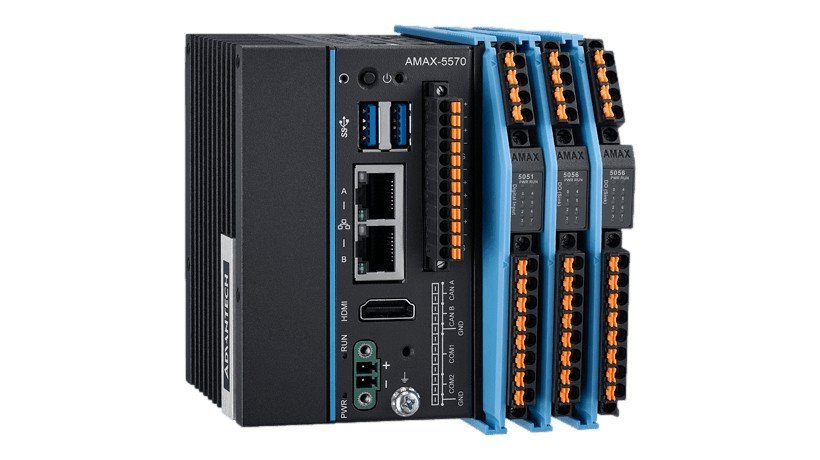Průmyslový řídicí počítač AMAX-5570-100X6A s pasivním chlazením a optimalizovaným BIOSem pro reálný čas s podporou Windows 10 LTSC a Linux (EdgeLinux 22.04).