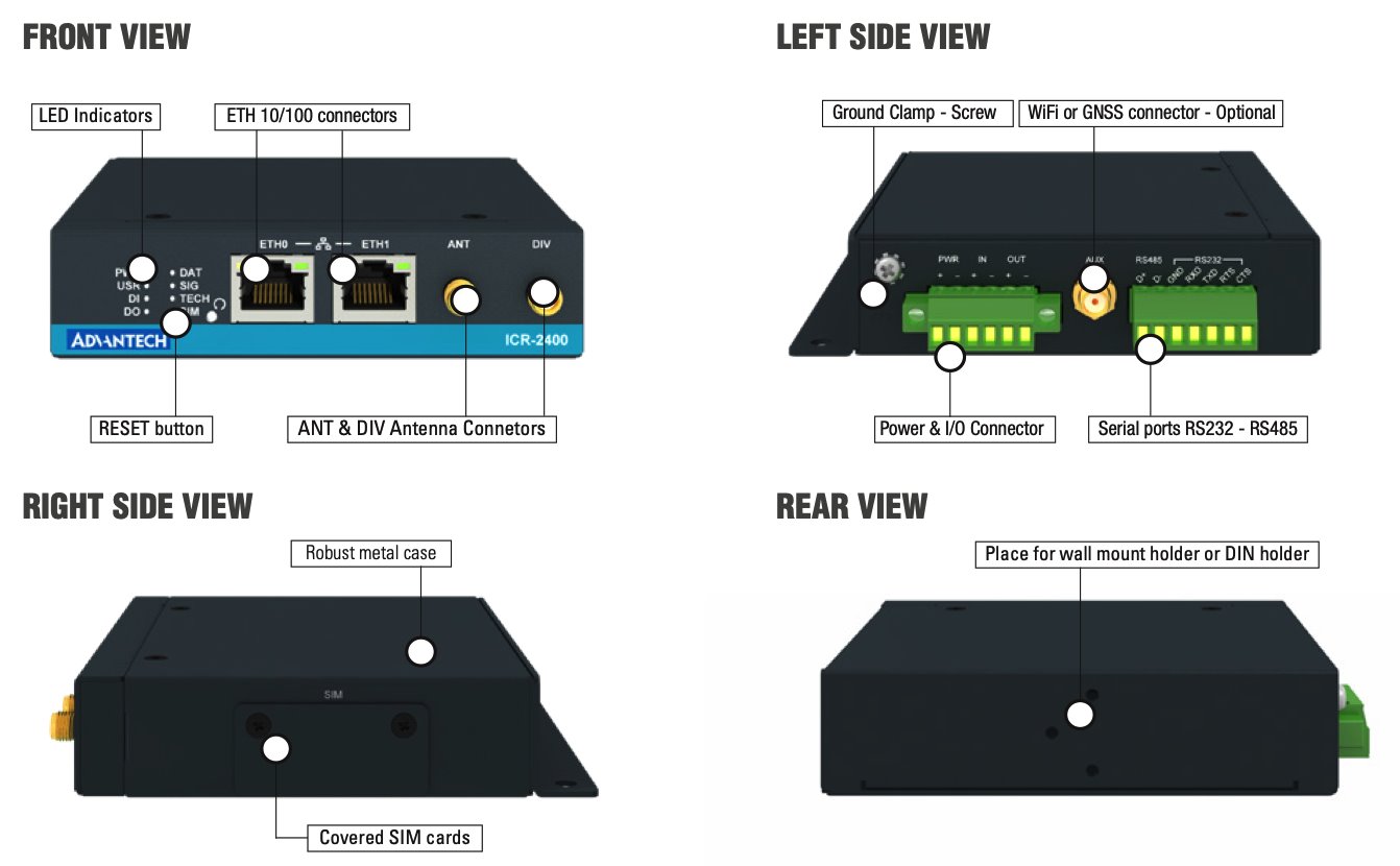 Advantech 5G router 2x LAN 1xRS232 1xRS485 2xSIM WiFi 1DI 1DO