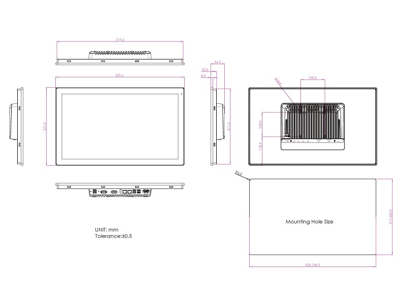 21,5" Panelový pasivně chlazený PC s širokoúhlou kapacitně dotykovou obrazovkou s podporou Windows 10 /11 IoT, Linux.