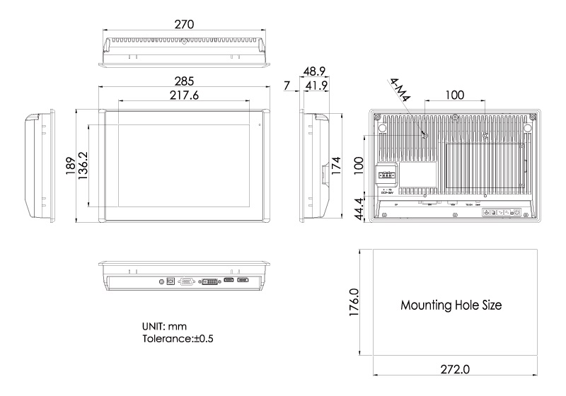 10" Průmyslový IP66 monitor, VGA, HDMI, DVI-D, DP, Monitor bez dotykové vrstvy.