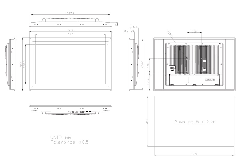 21.5" Průmyslový IP66 monitor, VGA, HDMI, DVI-D, DP Monitor s kapacitní dotykovou vrstvou.