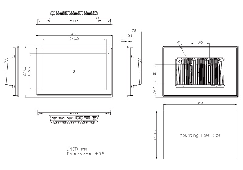 15,6" Panelový pasivně chlazený PC s širokoúhlou Full HD kapacitně dotykovou obrazovkou s podporou Windows 10 /11 IoT, Linux.