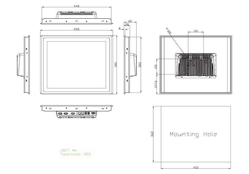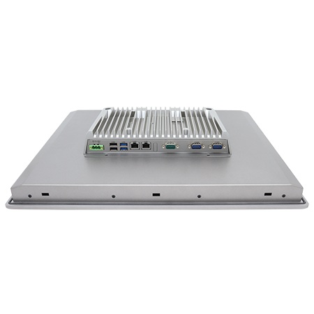 19" Panelový pasivně chlazený průmyslový počítač s odporově dotykovou obrazovkou a procesorem i5 12th generace s podporou Windows 10 IoT Enterprise, Windows 11, Linux.