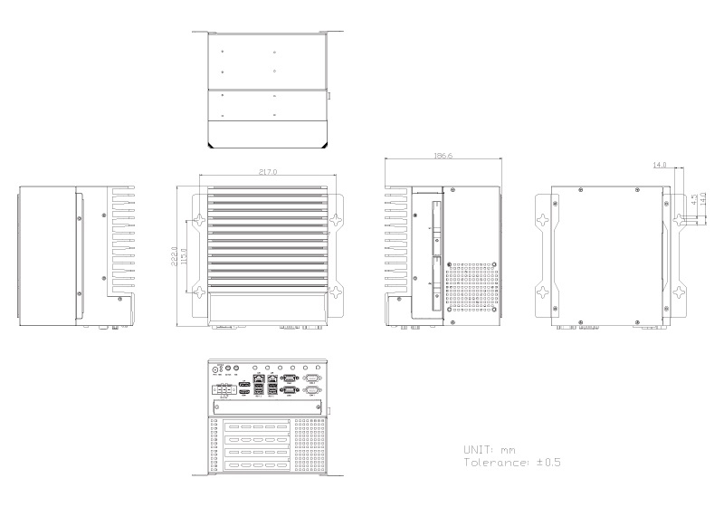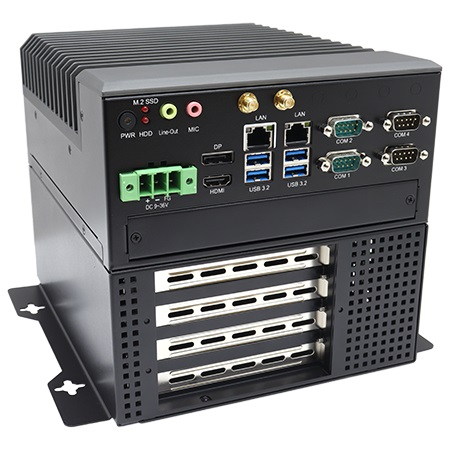 Box PC pasivně chlazený, Intel core 12/13th Gen, 4xCOM, 4xUSB, 2x2,5" SSD, 4xPCIe, 2xM.2, 2xLAN, HDMI, DP, -20 – 60°C