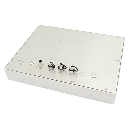 15" Nerezový pasivně chlazený PC s kapacitně dotykovou obrazovkou a celkovým krytím IP66/IP69K a procesorem Intel Atom x7425E s podporou Windows 10 /11 IoT.